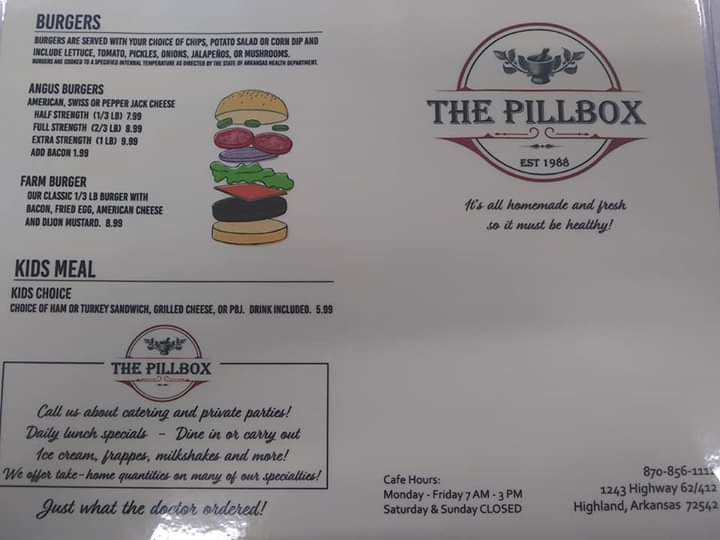 Welcome to Pill Box Cafe, a hidden gem located at 1243 Hwy 62 412 in Highland, Arkansas. Known for its warm and inviting atmosphere, this country café is the perfect spot for a delightful meal any time of the day.
